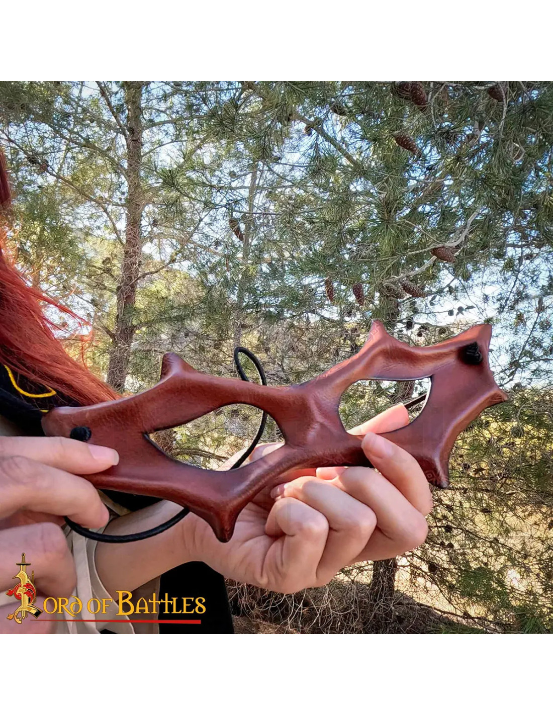 Realizzata a mano in vera pelle di tonalità marrone scuro e finitura opaca, questa maschera offre una sensazione di autenticità che eleva la tua interpretazione senza perdere comfort. La sua struttura rigida mantiene la forma durante scene intense, mentre i ritagli ovali permettono una visione chiara per muoverti con sicurezza in combattimenti, esplorazioni o performance.