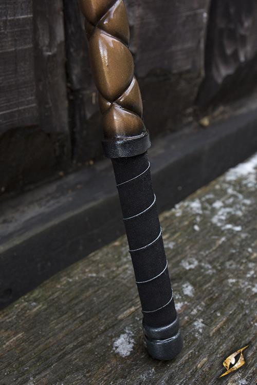 Ciò che rende speciale questa mazza sono i suoi dettagli accuratamente progettati. Ognuna delle cinque briglie frastagliate è lunga 13 cm e alta 7,5 cm, conferendole un aspetto intimidatorio e realistico. Inoltre, il manico color legno è scolpito con un bellissimo motivo a spirale, dipinto a mano e dettagliato per conferire all'arma un carattere unico.