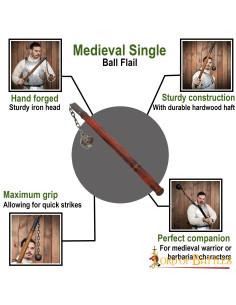 - Forza devastante: questa mazza medievale è progettata per infliggere colpi devastanti, capaci di perforare sia armature che scudi. Con esso diventerai un formidabile guerriero su qualsiasi campo di battaglia.