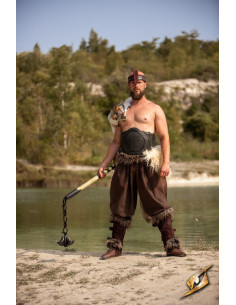 La finitura rustica e invecchiata della pelle conferisce un tocco autentico e artigianale, ideale per i personaggi che apprezzano l'estetica tradizionale nel loro equipaggiamento. Sia per un progetto personalizzato che come sostituzione di una catena esistente, questo pezzo migliora sia la funzionalità che l'aspetto della tua arma, ma è importante ricordare che riceverai solo la catena, senza la testa né il manico della mazza.