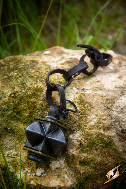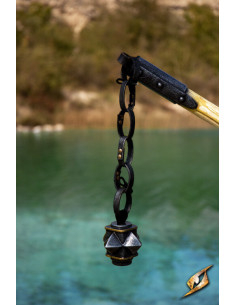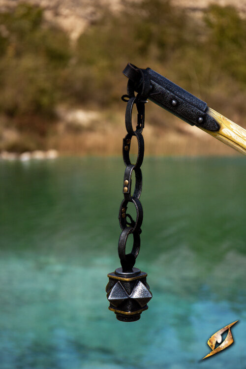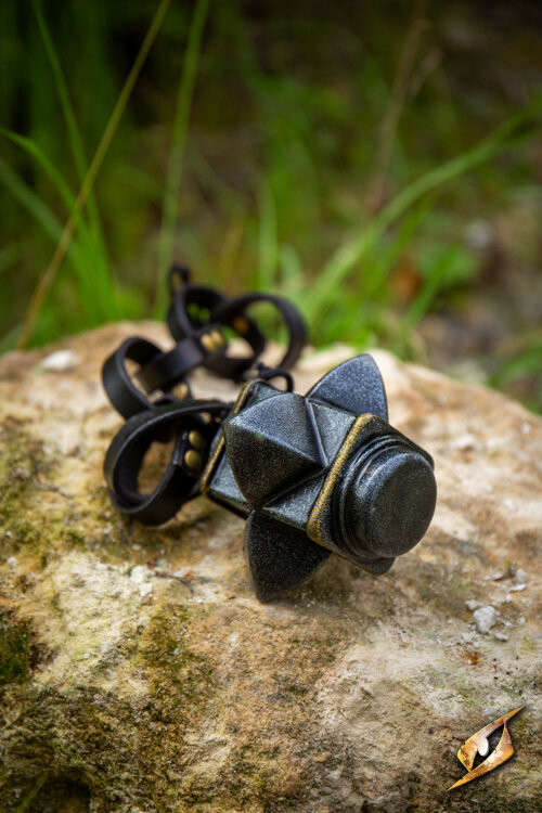 La Testa per Mazza LARP e Cosplay Khonarr in colore nero è la scelta perfetta per imporre rispetto sul campo di battaglia, anche se include solo la testa della mazza, senza il manico né la catena. Con il suo design aggressivo e accattivante, questa testa si distingue per il suo motivo a forma di stella, dove ogni punta si proietta verso l'esterno in una formazione audace e potente. Questo design non è solo decorativo, ma riflette l'essenza di un guerriero che utilizza l'intimidazione e la forza bruta come principali armi.