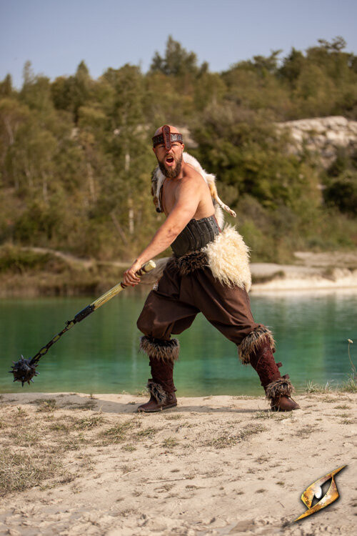 La Testa per Mazza Lockard LARP e Cosplay in colore nero è un tributo alla tradizione dei guerrieri di un tempo, progettata per essere un pezzo affidabile in qualsiasi confronto. La sua forma classica si distingue per un corpo arrotondato adornato con punte affilate, distribuite in modo uniforme per massimizzare la sua funzionalità e semplicità. Anche se il suo design sembra semplice, la Testa Lockard è altamente efficace in combattimento, rendendola un'opzione versatile per diversi personaggi, da soldati disciplinati a saccheggiatori che si affidano alla forza bruta.