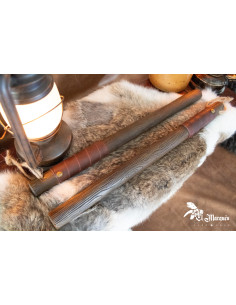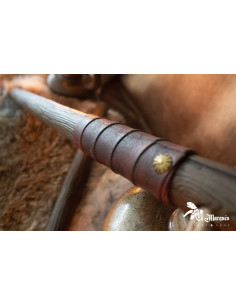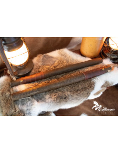 Il design di questo bastone riproduce legno autentico con incisioni dettagliate e venature visibili. La sua impugnatura è rivestita in un materiale simile alla pelle che assicura una presa comoda e salda, anche nelle scene più intense. Le sue tonalità marroni e le finiture decorative rinforzano l'estetica medievale, permettendo un'integrazione totale nelle tue avventure di fantasia.