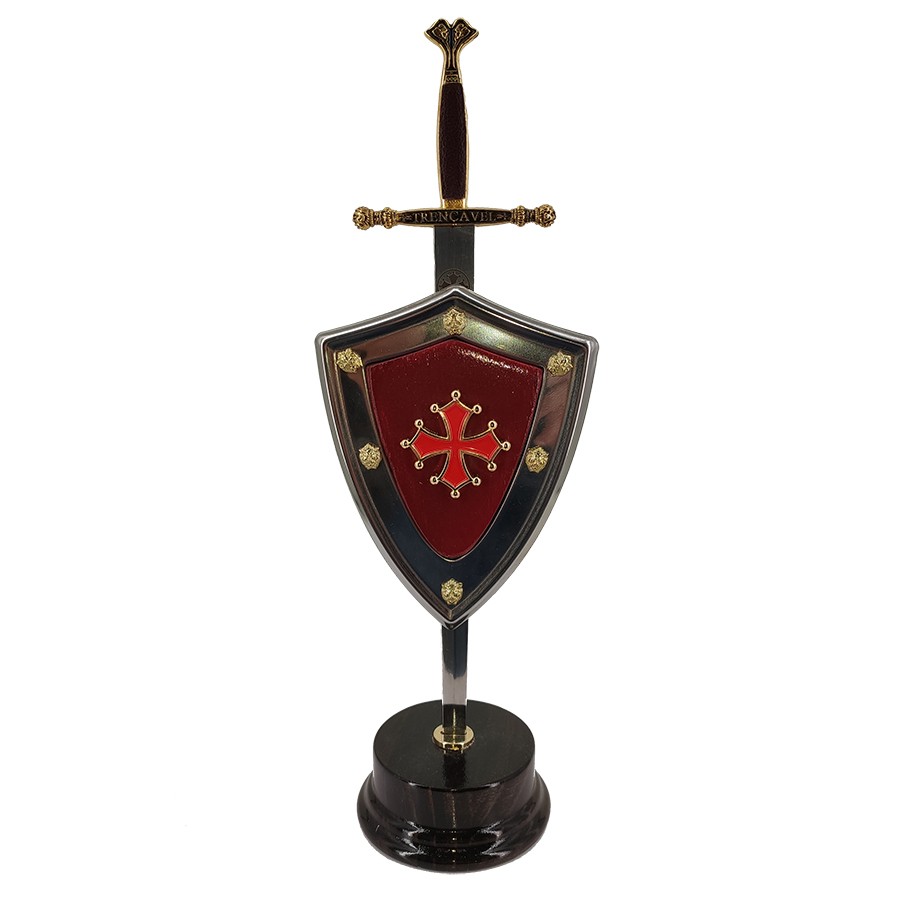Scopri il Set Croce dei Catari, un pezzo unico ed esclusivo che non può mancare nella tua collezione! Questo set è composto da un tagliacarte con scudo e supporto, perfetto da esibire sulla scrivania o sullo scaffale.