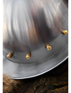 Ma il suo valore non si limita all'aspetto estetico e alle misure precise, comprende anche l'imbottitura e il sottogola in pelle, aggiungendo un ulteriore livello di comfort e sicurezza. Ti sentirai protetto e a tuo agio durante le tue avventure medievali.