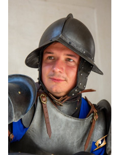 Il Morion è stato accuratamente progettato per darti una protezione ottimale senza ostruire la tua visione. La sua visiera è curva davanti e dietro per proteggere la testa e il viso senza interferire con il campo visivo. Inoltre, ha un casco rinforzato che si estende dalla fronte lungo il vertice del casco, offrendo una maggiore resistenza. Dispone inoltre di guanciali, rivettati al casco, che forniscono una protezione aggiuntiva per il viso.