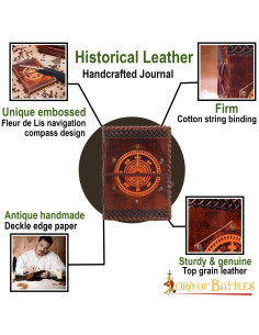 Con il nostro bellissimo diario in pelle fatto a mano, bussola di navigazione Fleur de Lis goffrata, sarai in grado di scrivere in qualsiasi momento e ovunque tu voglia soddisfare la tua natura di cercatore poetico.