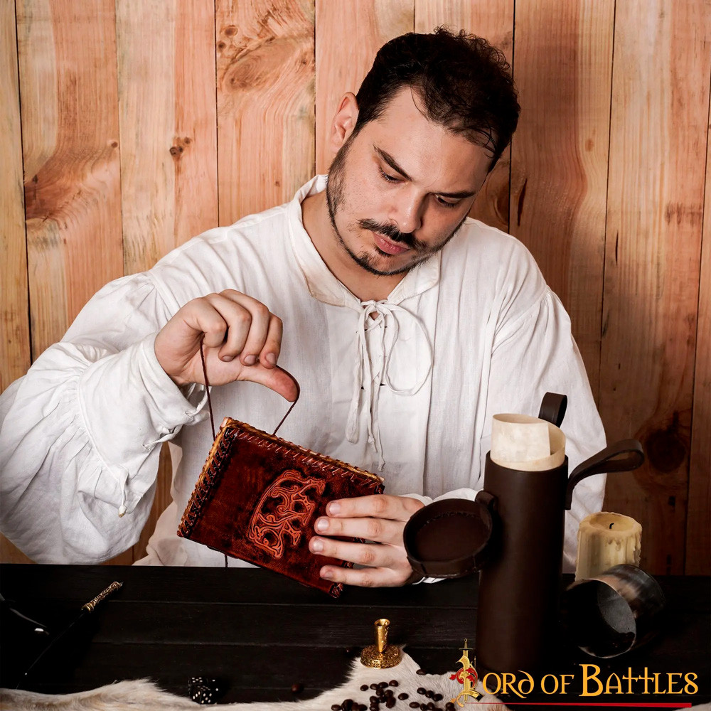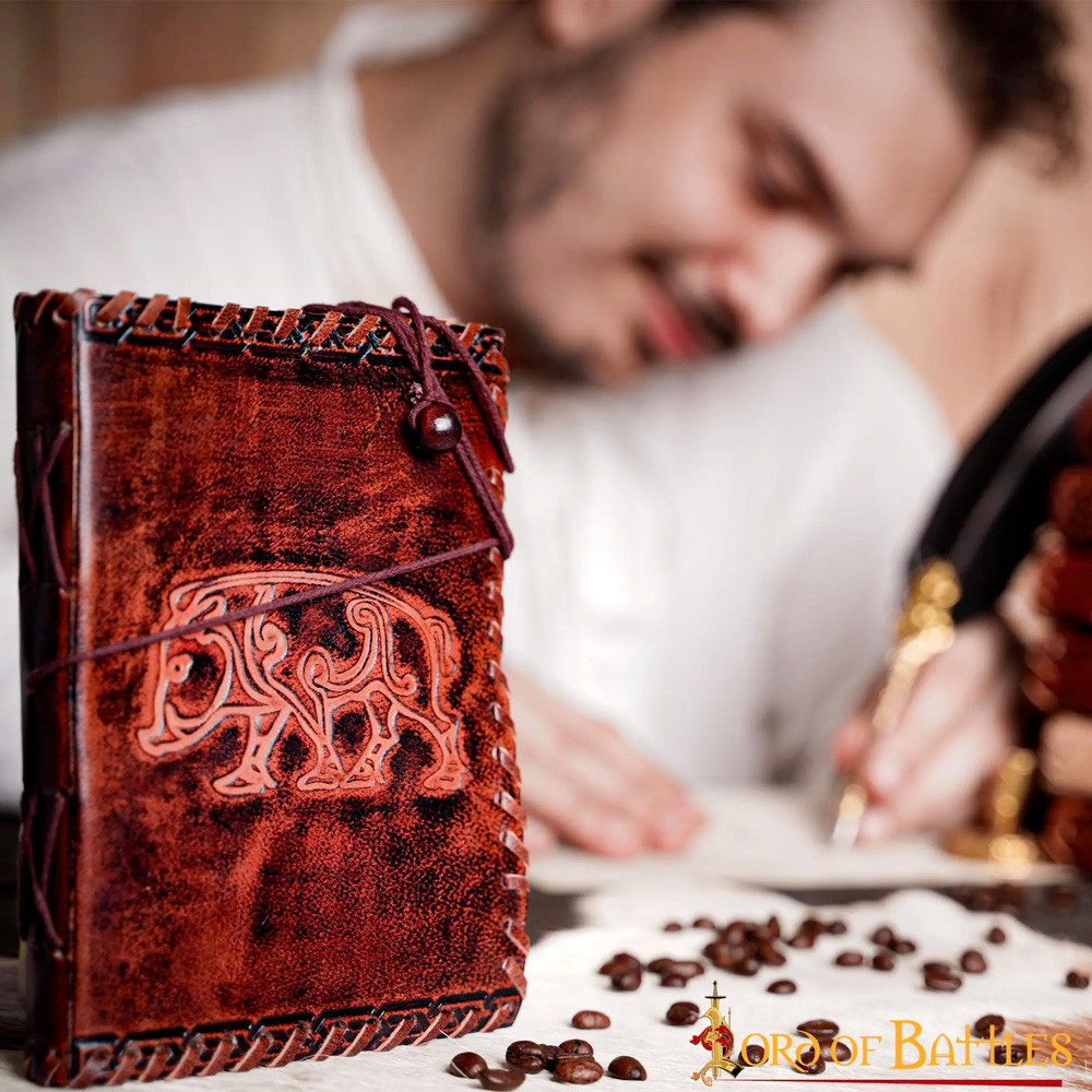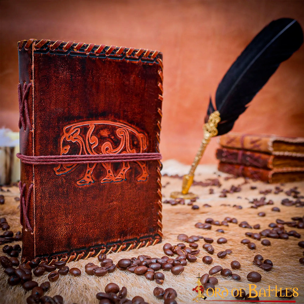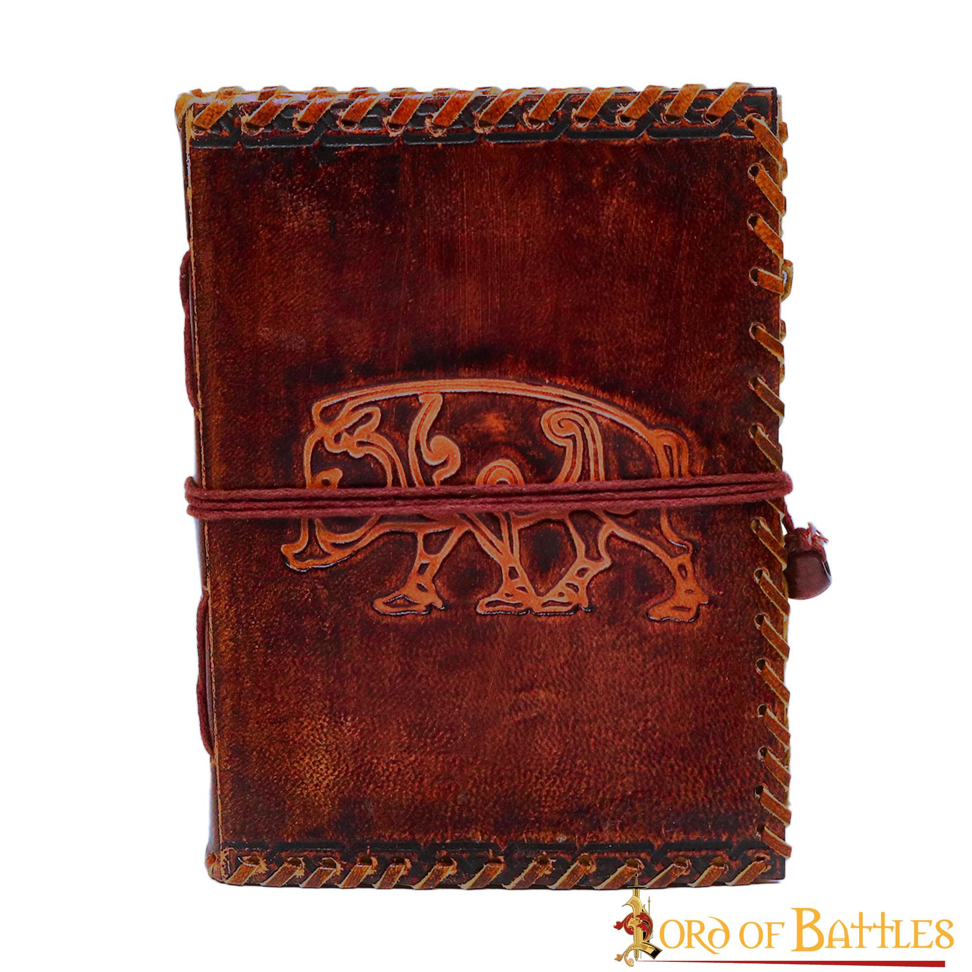 Diario medieval copertina in pelle con design floreale sbalzato