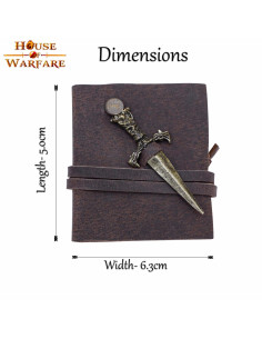 Se sei un amante del medioevo e delle storie d'avventura, allora questo piccolo diario medievale in pelle con mini-pugnale è perfetto per te. Con una lunghezza di 5 cm e una larghezza di 6,3 cm, questo diario è l'accessorio ideale da portare con te nei tuoi viaggi e annotare i tuoi pensieri e le tue avventure.