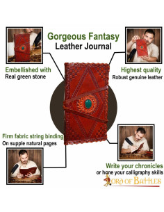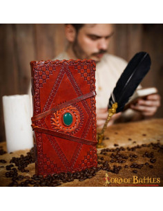 Diario medievale con copertina in pelle e pietra, colore rosso