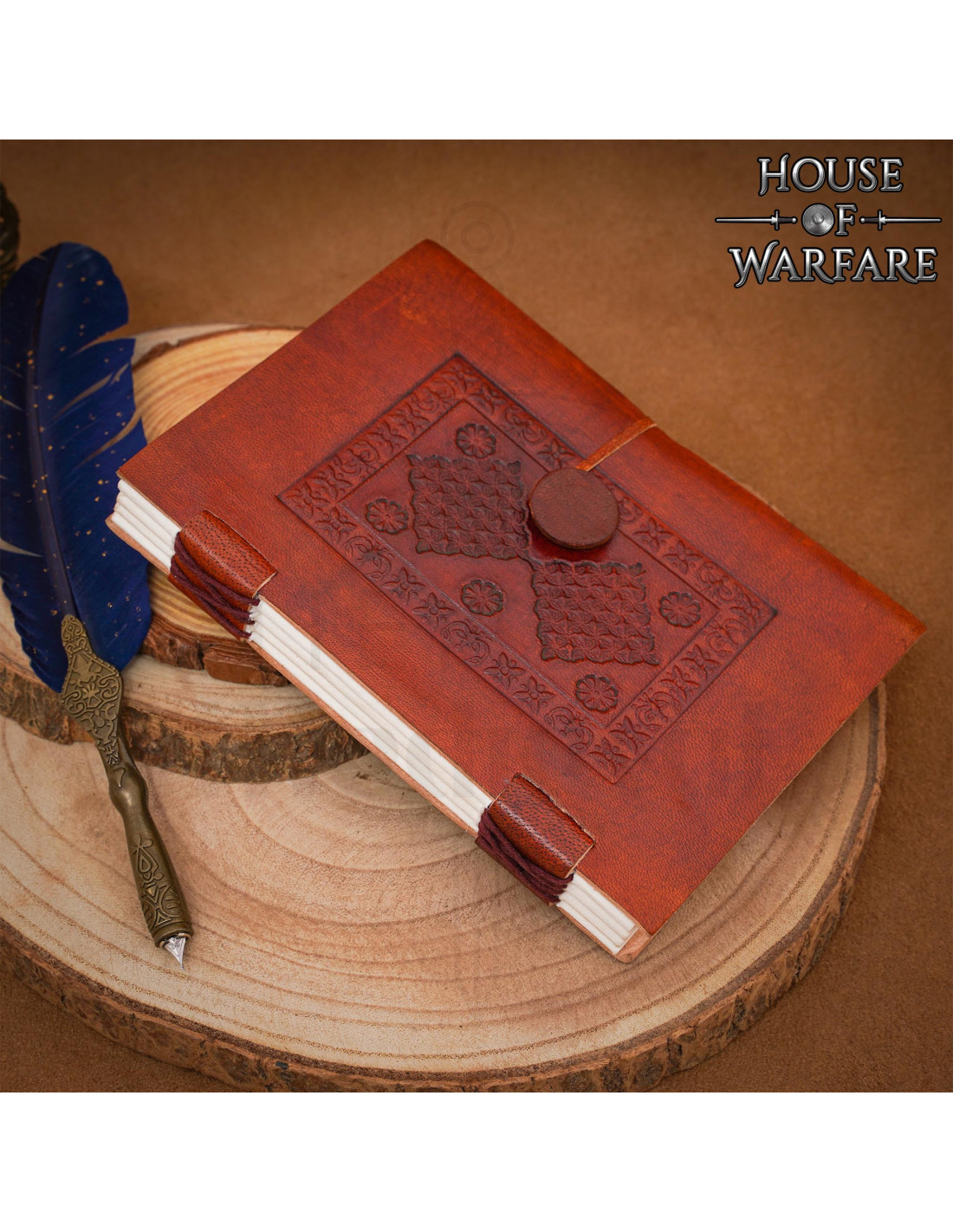 Questo taccuino trasforma la scrittura in un'esperienza sensoriale, grazie alla sua copertina in pelle marrone scuro con un design sbalzato che mescola motivi geometrici e floreali, dando a ogni pagina un contorno degno delle tue migliori idee. La copertina rigida protegge appunti e disegni mentre conferisce un aspetto elegante e personale, perfetto per chi apprezza il gusto per l'artigianato.