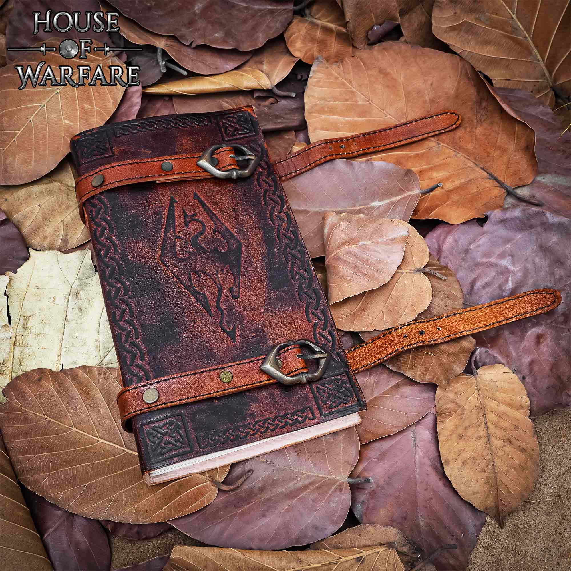 Diario medieval copertina in pelle con chiusura a cinturino e design a Drago