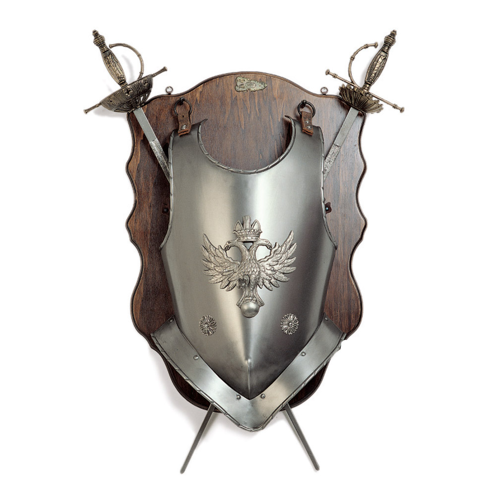 Richiesta su Panoplia in legno con spade e corazza d'aquila