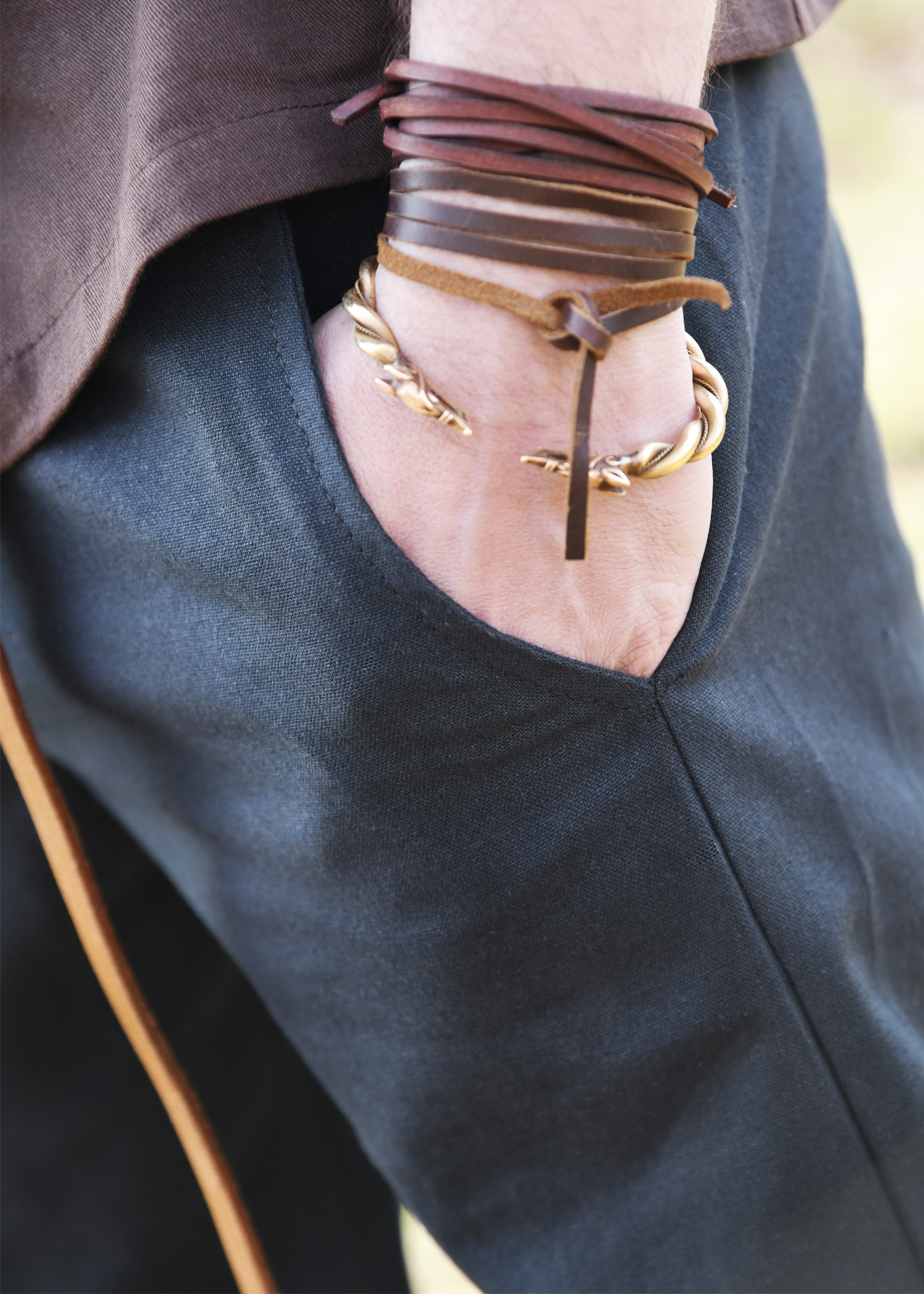 Aggiungi un tocco di stile medievale al tuo guardaroba con i pantaloni Hagen Basic in blu. Questi pantaloni versatili, realizzati in cotone leggero, sono un pezzo essenziale che non dovrebbe mancare in nessun guardaroba medievale.