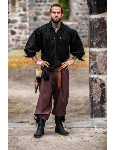 Oltre al suo design accattivante, i pantaloni capri modello Vincent in marrone sono molto facili da curare, poiché puoi lavarli comodamente a 30 gradi senza timore di danni. Sia che tu stia cercando un capo casual per tutti i giorni o per completare un costume, i pantaloni da pirata modello Vincent sono un'opzione versatile e pratica da non perdere. Ordina oggi e aggiungi un tocco di stile al tuo guardaroba con questi pantaloni esclusivi!