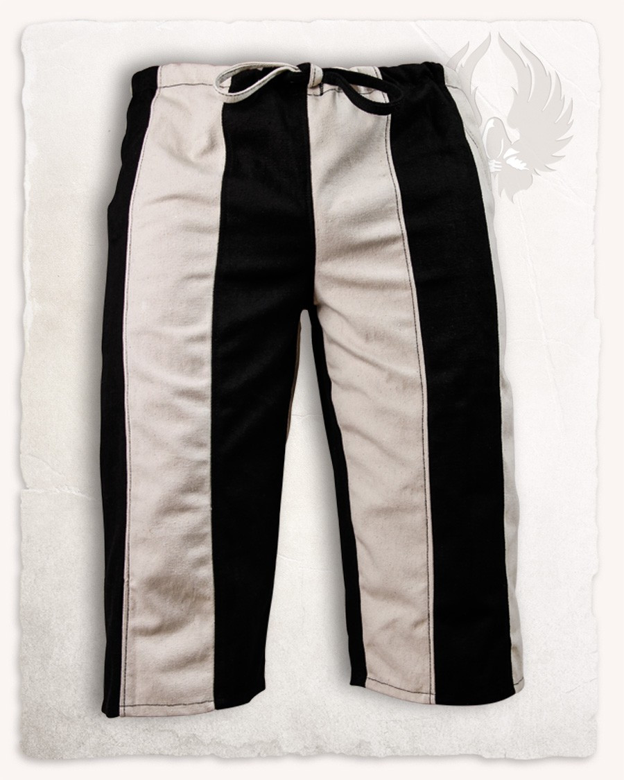 Ma non è tutto, la combinazione di colori nero e crema conferisce a questi pantaloni un aspetto autentico e accattivante. Il design a righe aggiunge quel tocco distintivo che le rende davvero speciali. Immagina quanto sarai fantastico alle feste medievali, agli eventi dei pirati o ai giochi di ruolo indossando questi eleganti pantaloni da pirata.