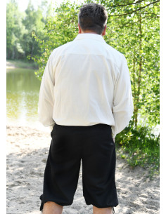 Abbina questi pantaloni con fasce per le gambe e una tunica per creare un autentico costume vichingo. Sono anche ideali per rappresentare un pirata o un mercante se abbinati a una camicia. Le possibilità sono infinite! Sia che tu stia partecipando a eventi storici, festival a tema o semplicemente desideri ravvivare il tuo abbigliamento quotidiano, i pantaloni capri con lacci neri Jonte sono una scelta perfetta. Questi pantaloni sono adatti anche per le donne, in tal caso consigliamo di ordinare una taglia più piccola. Sono realizzati al 100% in cotone e possono essere lavati in lavatrice a 40°C con ciclo delicato, ma non è consigliata l'asciugatura in asciugatrice.