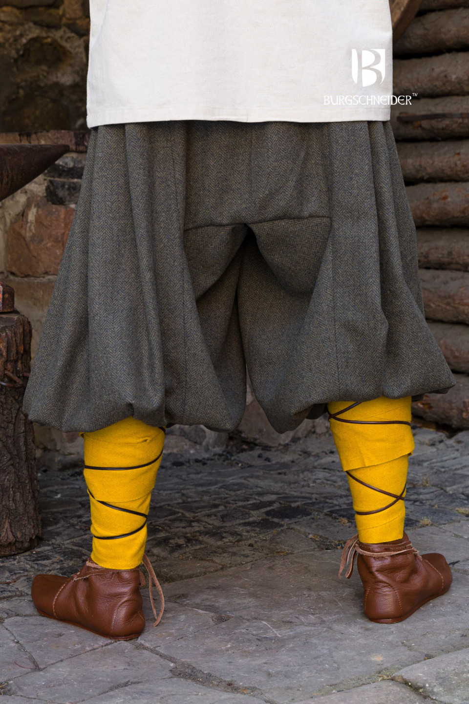 Esplora l'autenticità storica con i pantaloni a gamba larga Rus Borys in grigio oliva! Ispirati alle scoperte e alle raffigurazioni del periodo, questi pantaloni a spina di pesce presentano dettagli unici che ti trasporteranno indietro nel tempo con stile e comfort.