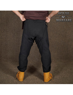 Equipaggia l'autenticità vichinga con i nostri pantaloni vichinghi Throsberg in nero! Questi non sono solo pantaloni, sono un pezzo essenziale del tuo outfit da guerriero, realizzati con cotone di qualità e progettati per distinguersi in ogni spedizione.