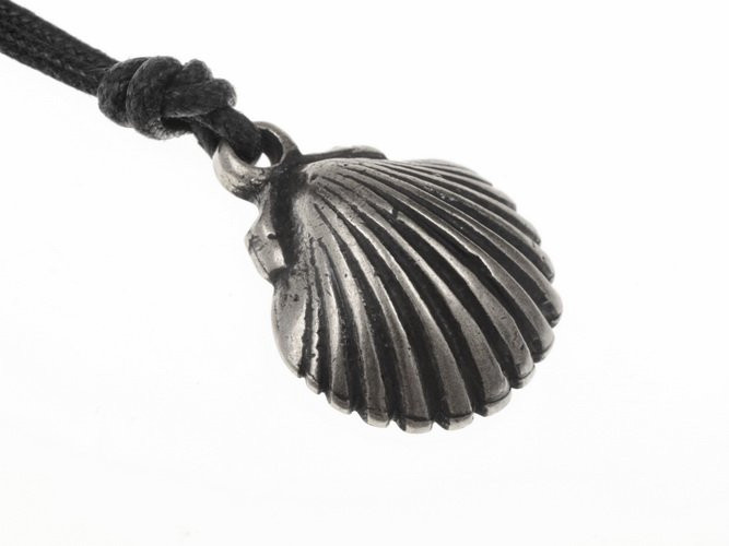 La conchiglia è simbolo del pellegrinaggio a Santiago de Compostela fin dal Medioevo, conferendo prestigio e distinzione a chi la indossava. Con dimensioni di 3 x 2,8 cm, questa sospensione è realizzata in Zama e disponibile nei toni ottone o argento.