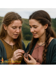 Realizzato con tecniche che risalgono all'età del bronzo, ogni pezzo è unico, con variazioni naturali di tono e texture che ne esaltano il carattere artigianale. Perfetto per completare un abbigliamento di ispirazione medievale o per esporlo nella tua collezione, è un simbolo autentico di saggezza ancestrale e protezione.