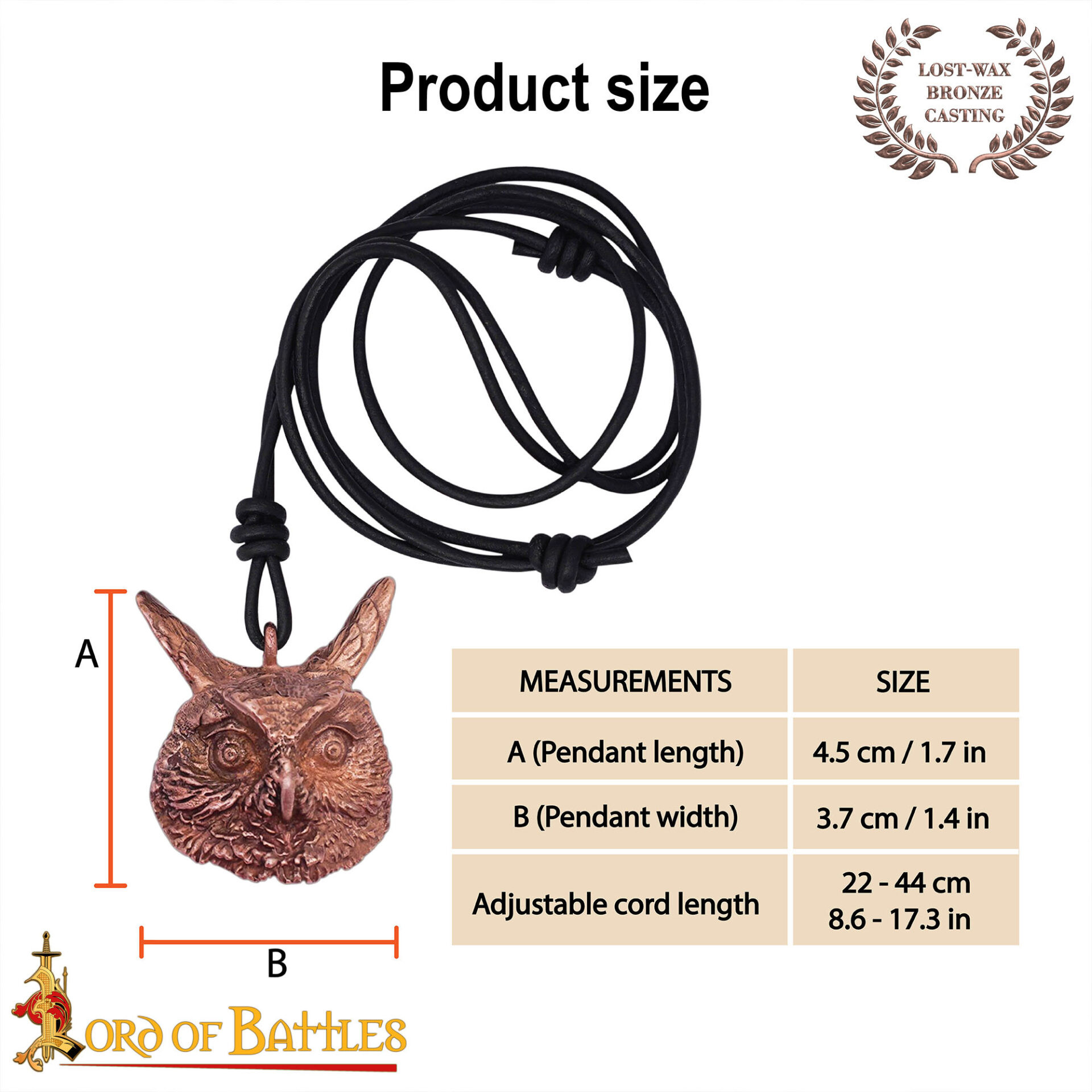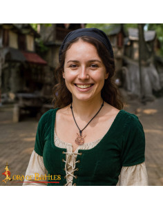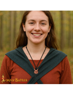 Include un cordino in pelle nera, completamente regolabile, progettato per adattarsi comodamente alla tua vita quotidiana o a occasioni speciali, e pensato per facilitare cambi rapidi tra look. Il suo peso leggero consente di indossarlo come talismano per l'uso quotidiano o come pezzo protagonista in ricreazioni storiche e festival.