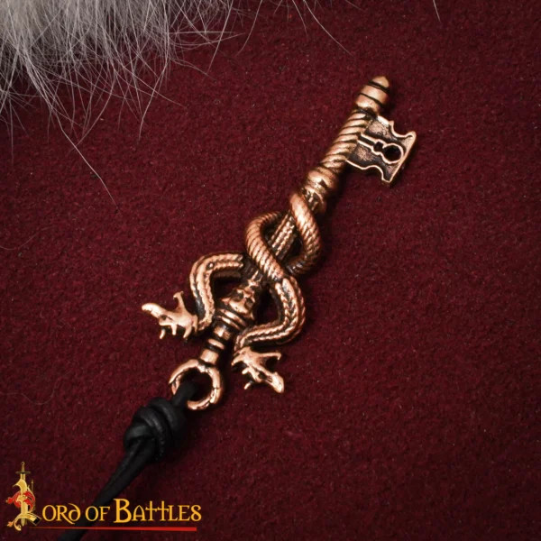 Il Pendente Chiave Drago Bronzo della Guardia Evocatrice richiama porte antiche e guardiani dimenticati, grazie alle sue due teste di drago che guardano verso il cielo e alle serpenti che si avvolgono attorno al suo corpo, creando un rilievo così marcato che sembra prendere movimento. Questo livello di dettaglio trasforma il pezzo in un protagonista visivo, ideale per chi cerca un accessorio con una presenza propria, che completi sia abiti quotidiani che look da evento o ricreazioni fantastiche.
