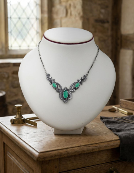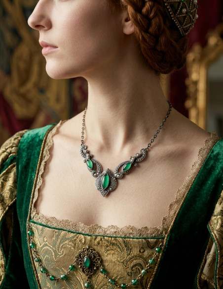 Questo ciondolo, supportato dalla prestigiosa marca tedesca Lazell Historic, diventa un simbolo di fiducia nella qualità e nell'artigianato. Ogni perla di cristallo verde, accuratamente selezionata, evoca uno stile gotico e medievale che ricorda epoche in cui estetica e simbolismo avevano un significato profondo. Realizzato in Germania secondo i più elevati standard, garantisce durata e resistenza per accompagnarti in ogni passo del tuo cammino. Con questo complemento, porti non solo un pezzo di bellezza ma anche una dichiarazione audace di chi sei e cosa rappresenta la tua storia. Il modo in cui scegli di adornarti dice molto, e ora puoi farlo con un pezzo che rispecchia il tuo carattere, la tua storia e il tuo potere di distinguerti in ogni scenario.