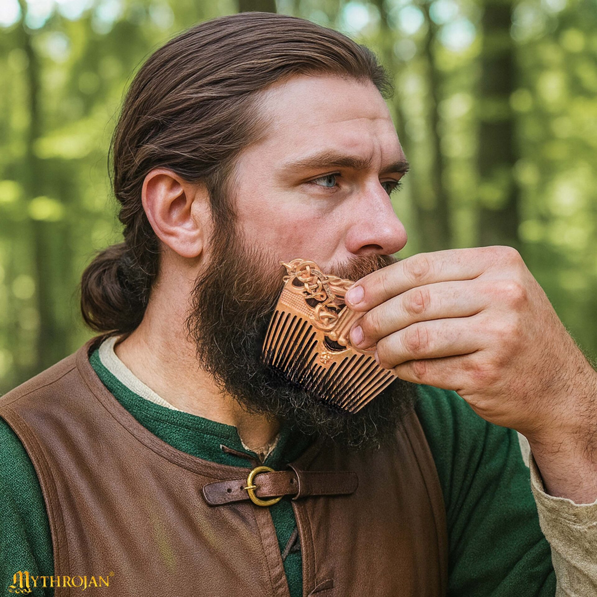 Richiesta su Pettine vichingo in ottone con fodera in pelle, finitura lucida