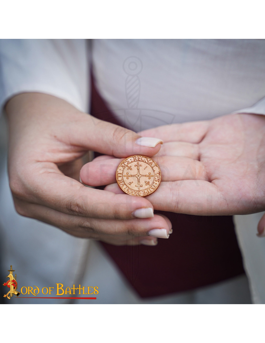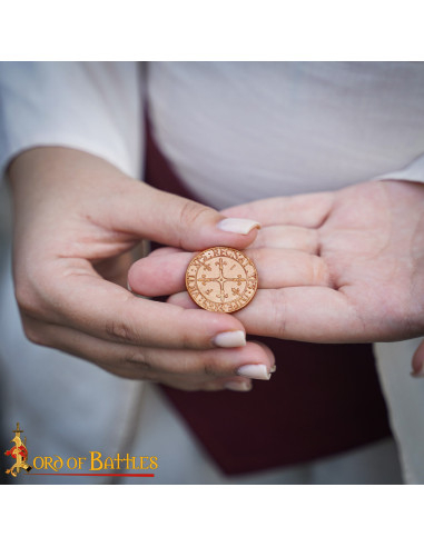 I motivi centrali, con uno scudo che mostra tre gigli e una corona, e l'iscrizione circolare in rilievo, aumentano la sensazione di autenticità, facendo sì che il pezzo si distingue per la sua simbologia. La bordatura leggermente elevata protegge il decorato e facilita la manipolazione, adattandosi facilmente a piccole esposizioni, cornici o presentazioni tematiche, apportando un tocco sofisticato al tuo spazio.