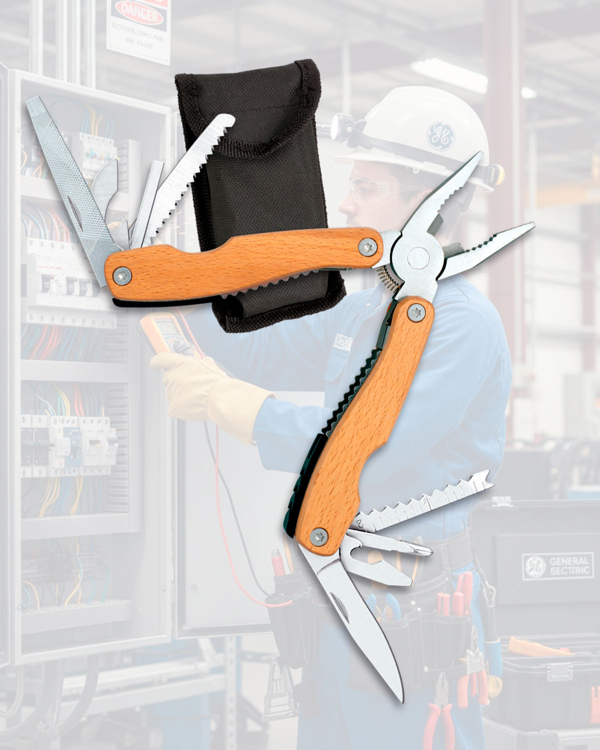 Pinza multifunzionale Albainox, con manico in legno e custodia in nylon