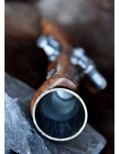 Scopri l'affascinante pistola a pietra focaia Trabuco tipo Dragon, XVIII secolo, fedele replica delle armi da fuoco utilizzate nel XVIII secolo. Conosciuta anche come pistola a espigole o pistola tromblon, questa pistola archibugio è caratterizzata dalla sua canna corta, larga, a forma di imbuto.