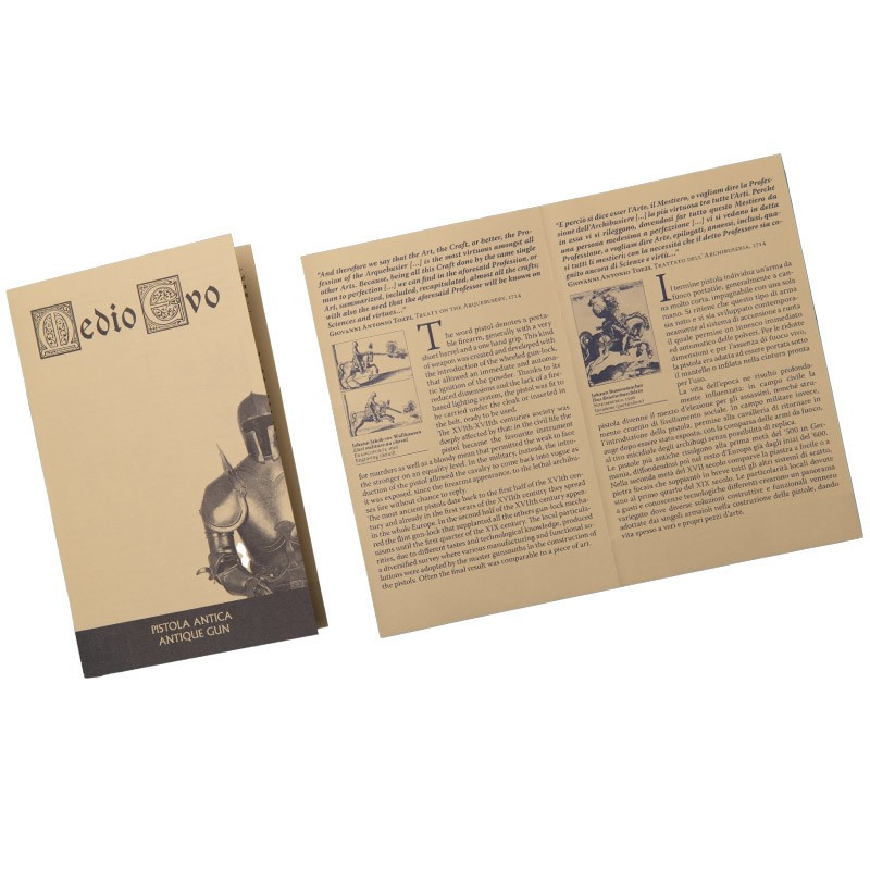 La pistola Terzetta Medievale non è solo un oggetto decorativo; è un omaggio all'ingegneria e al design delle armi del XVIII secolo, un simbolo di potere e abilità che adornerà qualsiasi collezione o spazio con un'aura di storia e distinzione. Fai risplendere la tua collezione di antiquariato con questa splendida replica, una vera testimonianza dell'abilità e dell'abilità artistica dei maestri armaioli dell'epoca.