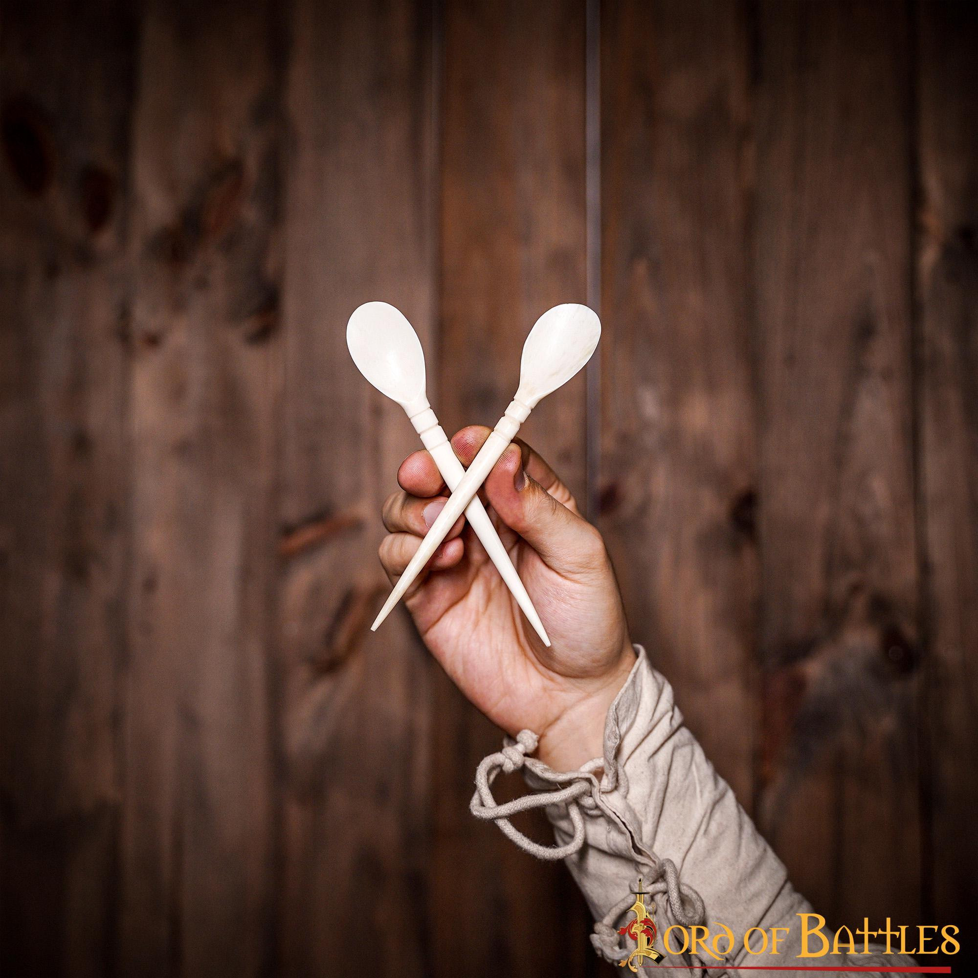 Set di 4 cucchiai medievali in corno di bue (16,5 cm.)