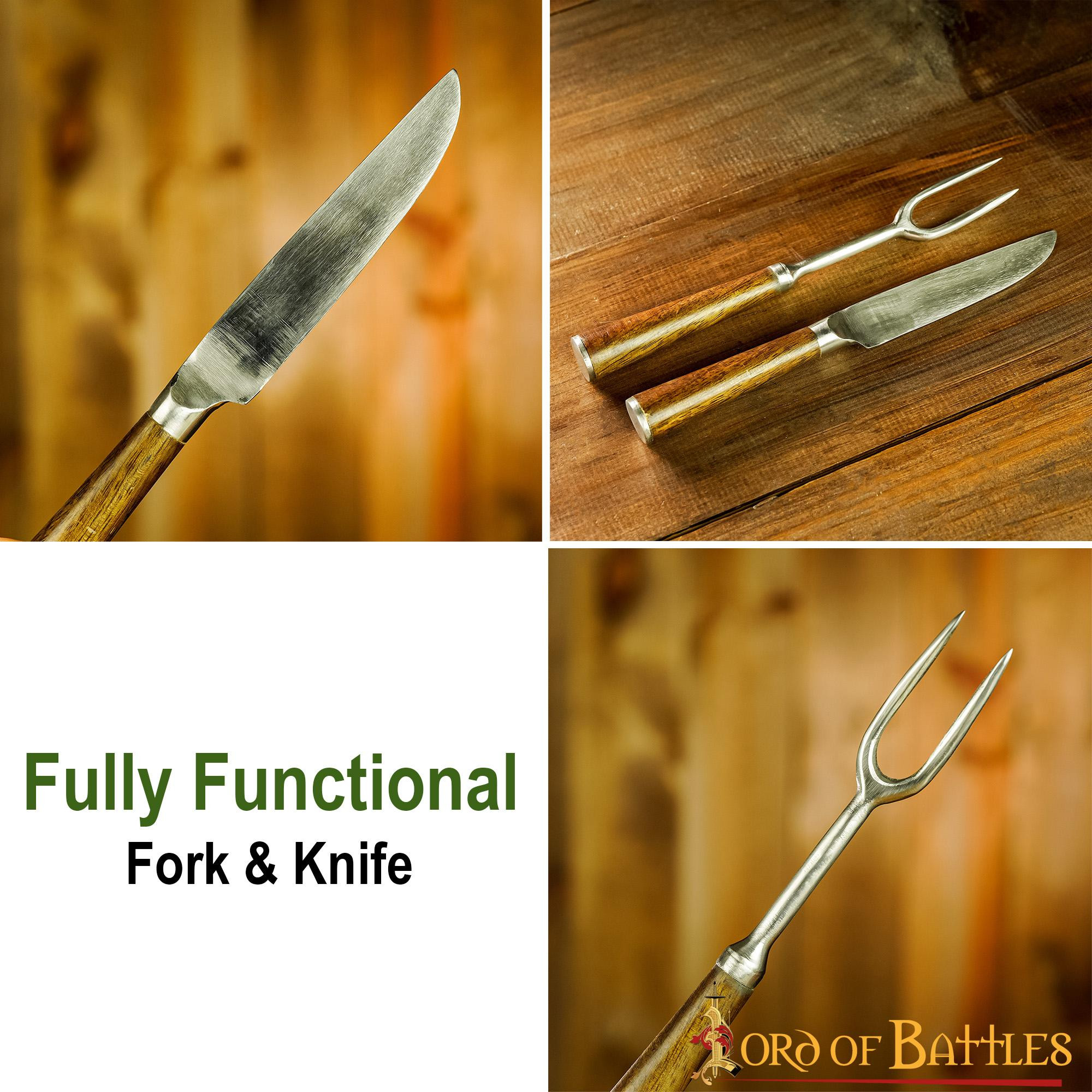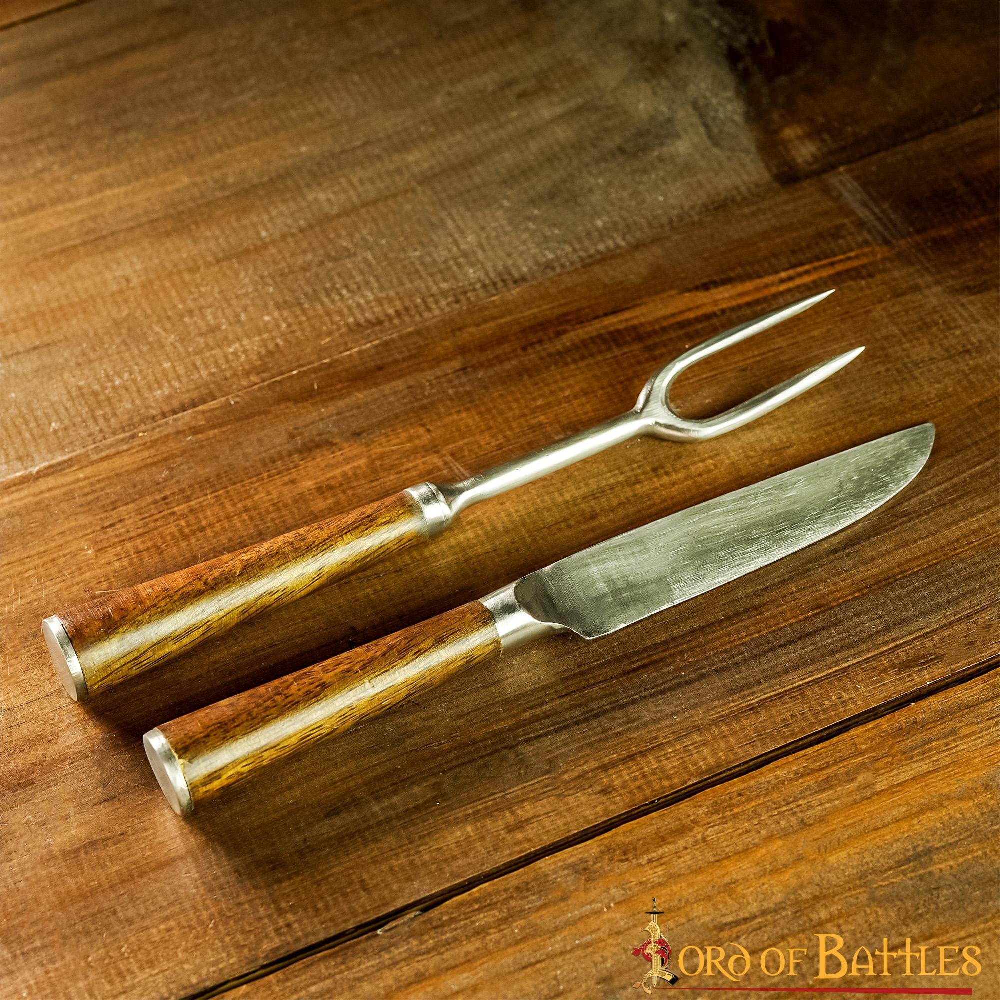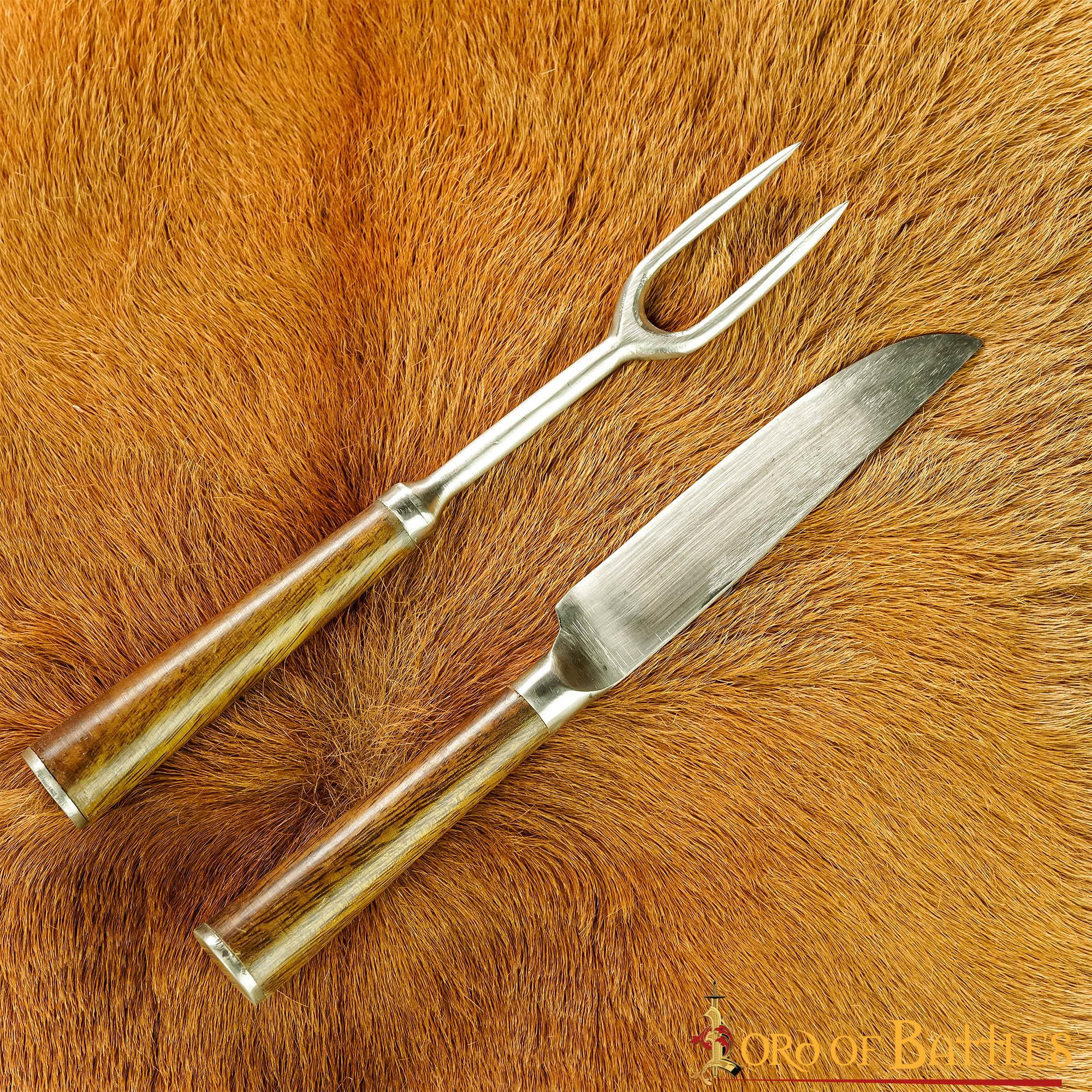 Set di posate medievali in acciaio inox, con custodia in pelle