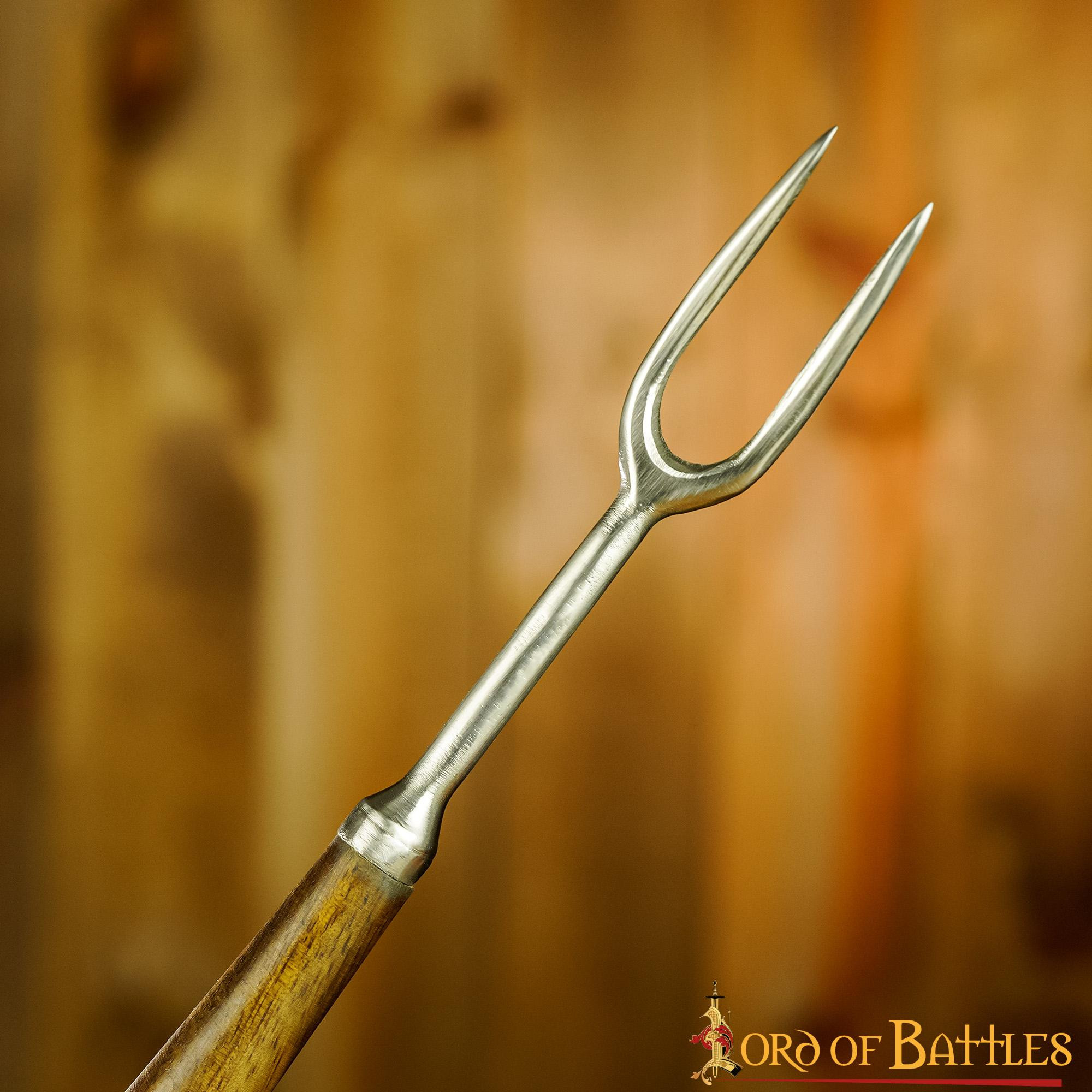 Set di 2 posate medievali lunghe merlate - manico in corno di corno