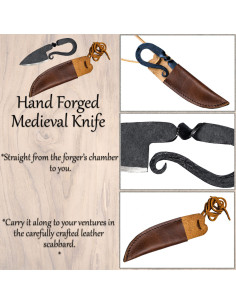 Porta l'epopea del passato nelle tue mani con questo coltello medievale in ferro forgiato a mano! Questo impressionante coltello è stato progettato sulla base di coltelli medievali trovati, offrendoti un'autentica esperienza storica.