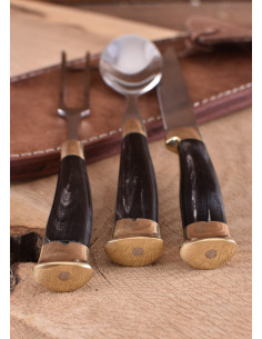 Richiesta su Set di 3 posate medievali con coperchio, manico in corno
