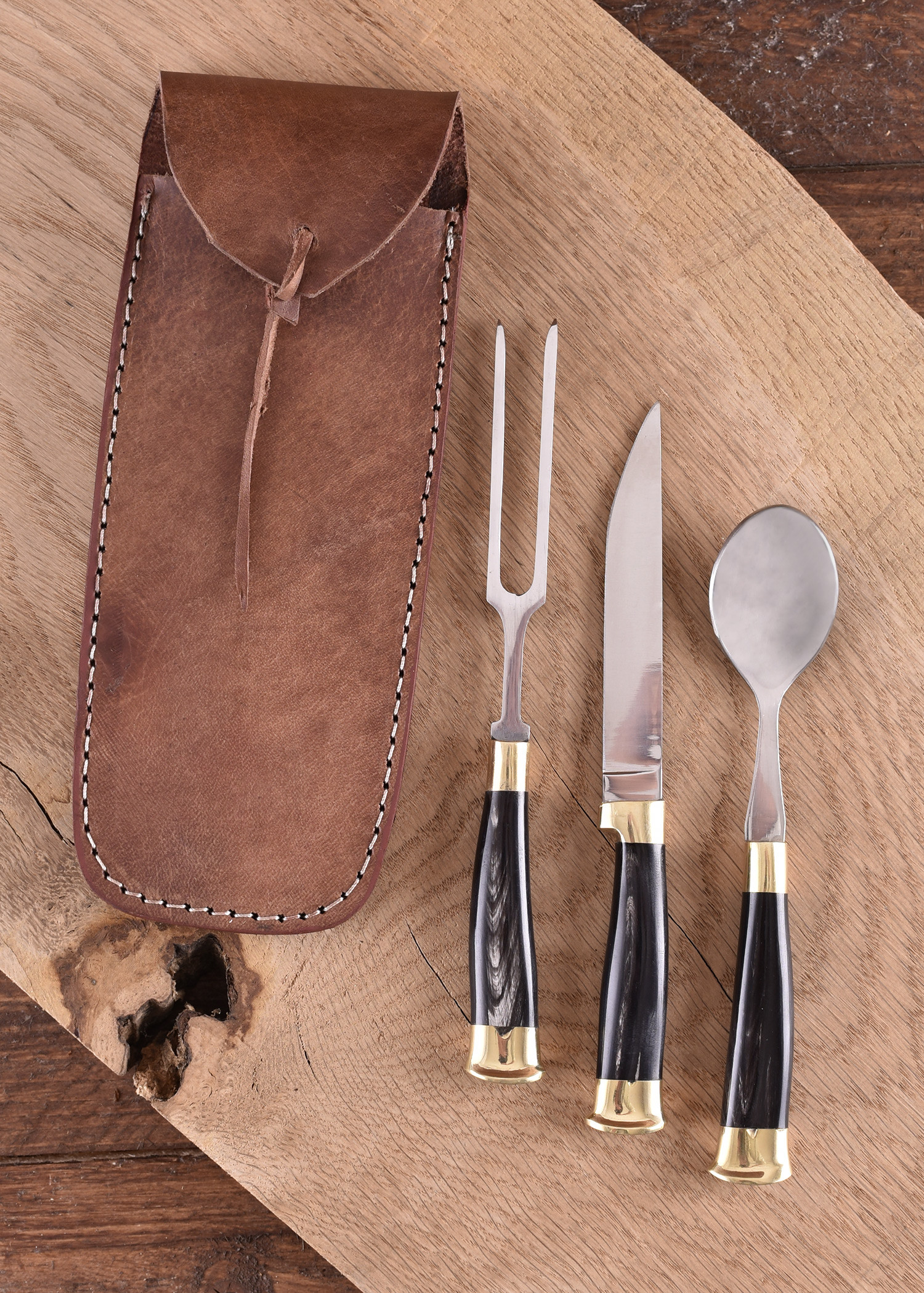 Nonostante il suo design medievale, questo set di posate da tre pezzi soddisfa perfettamente anche gli elevati standard della cucina moderna. Inoltre, questo set di posate include una custodia in vera pelle per una conservazione sicura.