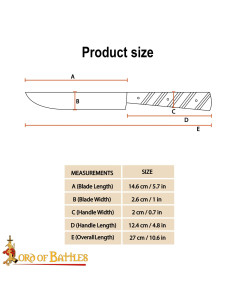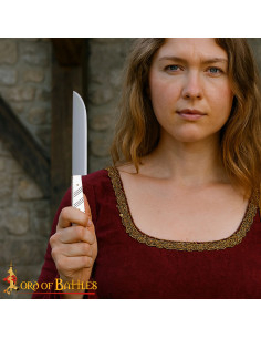 In un contesto storico, i coltelli personali erano compagni indispensabili nel Medioevo, usati quotidianamente a tavola e nei campi. Questa replica cattura questa presenza discreta e pratica, collegando la tua tavola a secoli di tradizione culinaria e sociale.
