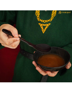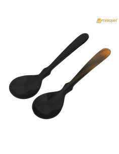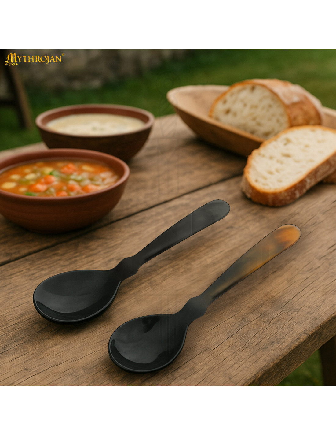 Realizzati da artigiani esperti, ogni cucchiaio riflette variazioni naturali di colore e texture, rendendoli perfetti come pezzi funzionali e come elementi decorativi per ricostruzioni storiche. Forni e utensili in corno erano comuni nell'era vichinga e nel Medioevo, usati per la loro leggerezza e resistenza, caratteristiche che conservano anche questi cucchiai.