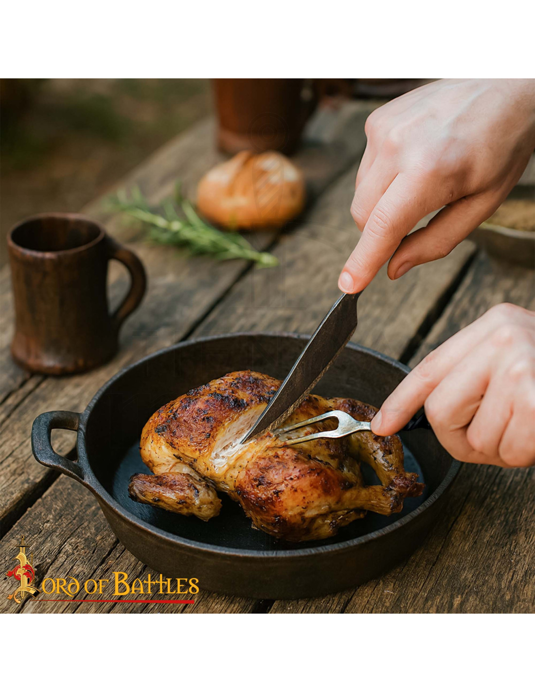 Preparate i vostri pasti con stile e distinzione. Acquistate oggi il Set di Posate Medievali in Acciaio Inox e Custodia in Pelle e godetevi l'autenticità e la qualità in ogni boccone!