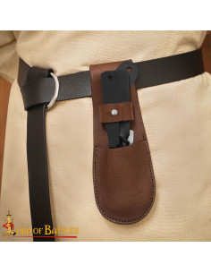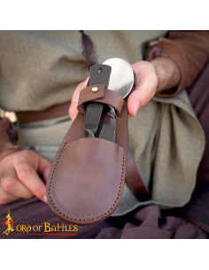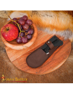 Set 2 posate medievali merlate con rivestimento in pelle - corno corno