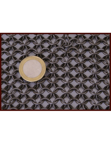 Verdugo cotta di maglia in acciaio annerito, anelli piatti e ribattuti (9 mm)