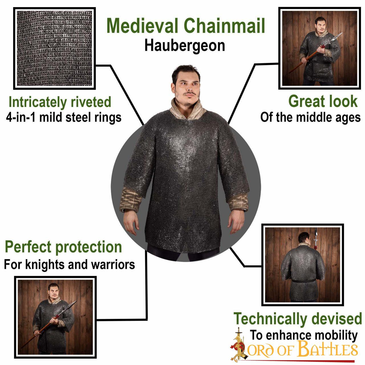 Cotta di maglia a maglie piatte rivettate, modello Hauberk