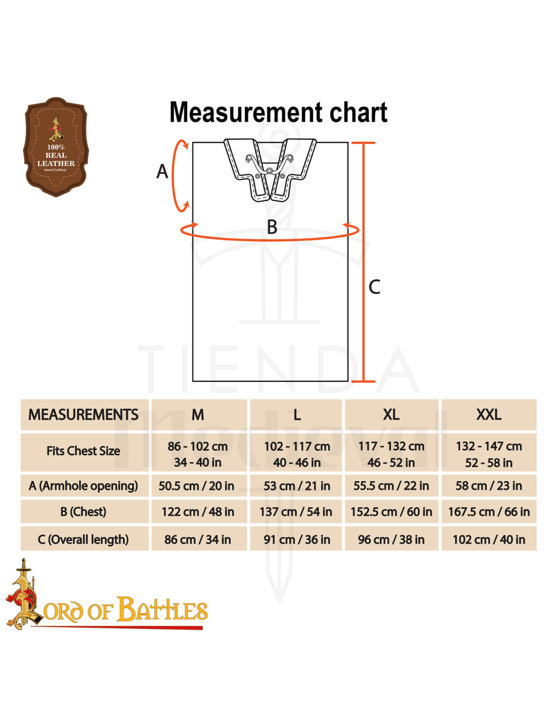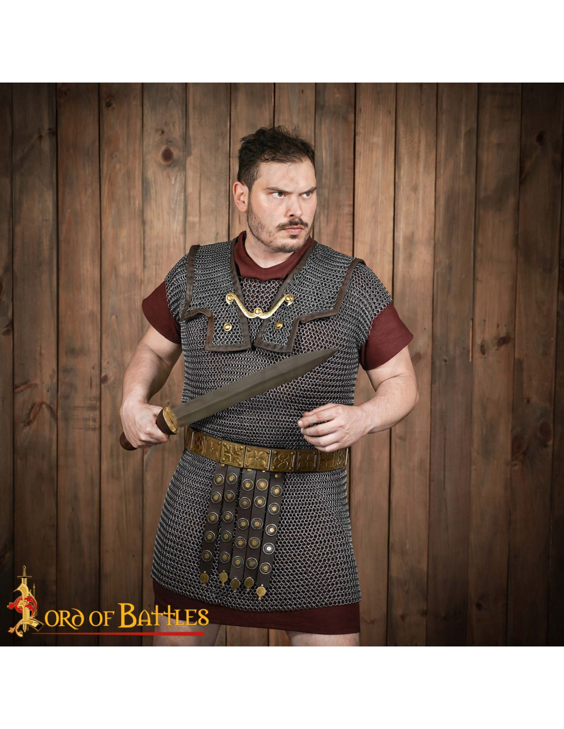 Con taglio senza maniche fino all'altezza della coscia, questo pezzo combina protezione e leggerezza, perfetto per chi monta un kit romano autentico, partecipa a ricreazioni storiche, ha bisogno di abbigliamento resistente per il teatro, o cerca un pezzo da collezione con presenza scenica.