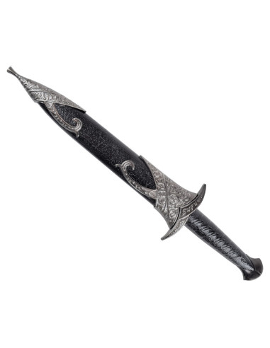 Trasforma la tua collezione o il tuo costume in qualcosa di memorabile. Con le sue finiture dorate che imitano il bagliore delle narrazioni leggendarie e la fondina bianca che conferisce un'aria di purezza e nobiltà, questa daga diventa un simbolo del tuo carattere. La resistenza dell'acciaio al carbonio nella sua lama di 24 cm garantisce che questo simbolo non sia solo bello, ma anche durevole, pronto a accompagnarti in ogni scenario, sia in mostra, cosplay o collezione personale. Con questa componente tra le mani, ogni attimo si trasforma in una dichiarazione di potere, storia e distinzione.