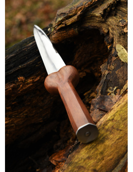 Immagina di avere tra le mani un oggetto che non solo rappresenta potere, ma riflette anche il tuo atteggiamento audace e senza paura. Questa sensazione di essere preparato e in controllo, mentre attrai sguardi per il suo design aggressivo e d'impatto. La daga testicolare con fondina, progettata da Ulfberth, diventa il tuo simbolo di personalità forte, una dichiarazione visibile del fatto che non ti accontenti del convenzionale. Ogni dettaglio, dalla sua lama in acciaio ad alto contenuto di carbonio fino alla impugnatura in legno, è stato pensato per darti potere, facendoti sentire sicuro e pronto ad affrontare qualsiasi sfida. La fondina in pelle aggiunge un doppio livello di protezione e sicurezza, garantendo che questo pezzo esclusivo sia sempre al sicuro nella tua collezione o nelle tue mani. Questa daga non è solo un'arma decorativa, è un riflesso del tuo spirito indomabile, del tuo stile senza compromessi e del tuo desiderio di distinguerti in ogni occasione.