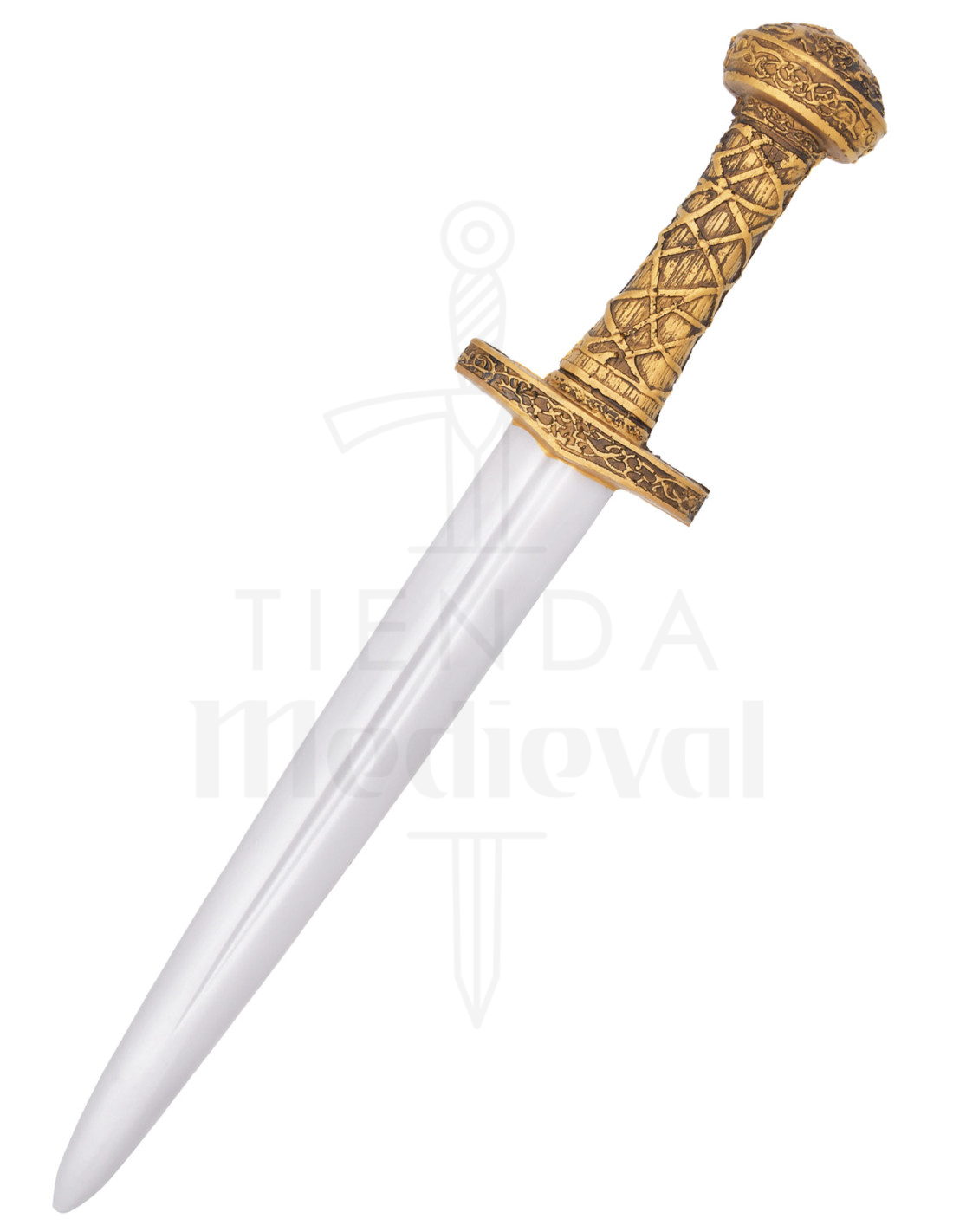 Perché non si tratta sempre di forza, ma di precisione e presenza, questo modello funge da arma secondaria elegante, strumento rituale o accessorio di scena che migliora l'immersione senza aggiungere peso che possa affaticare. La finitura curata e la combinazione di colori argento e oro fanno sì che Eldrin si distingua sia in combattimenti coreografati che in cosplay o rappresentazioni teatrali.