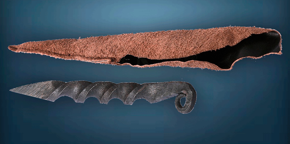 Pugnale medievale a spirale con fodero (16 cm.)